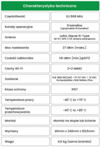 TRANSMISJA RADIOWA – Bramka LoRaWAN RAK7289 V2 jest zgodna ze standardem LoRaWAN 1.0.3 (≤25 mW) i umożliwia odczyt danych z urządzeń B METERS.