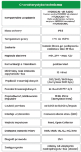 IMPULSOWANIE – Możliwość podłączenia do dwóch wejść impulsowych (tylko HYDROCAL-M4 RADIO) zgodnych z licznikami (wody, gazu, energii elektrycznej, ciepła) wyposażonymi w emiter impulsów (REED lub Open Collector).