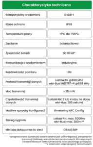 *prognozowana żywotność baterii zależna jest od konfiguracji, parametrów transmisji radiowej, warunków temperaturowych, klimatycznych i środowiskowych oraz sumarycznej ilości zliczonego przepływu.
