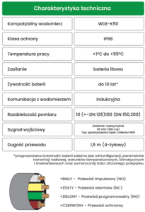 *prognozowana żywotność baterii zależna jest od konfiguracji, parametrów transmisji radiowej, warunków temperaturowych, klimatycznych i środowiskowych oraz sumarycznej ilości zliczonego przepływu.