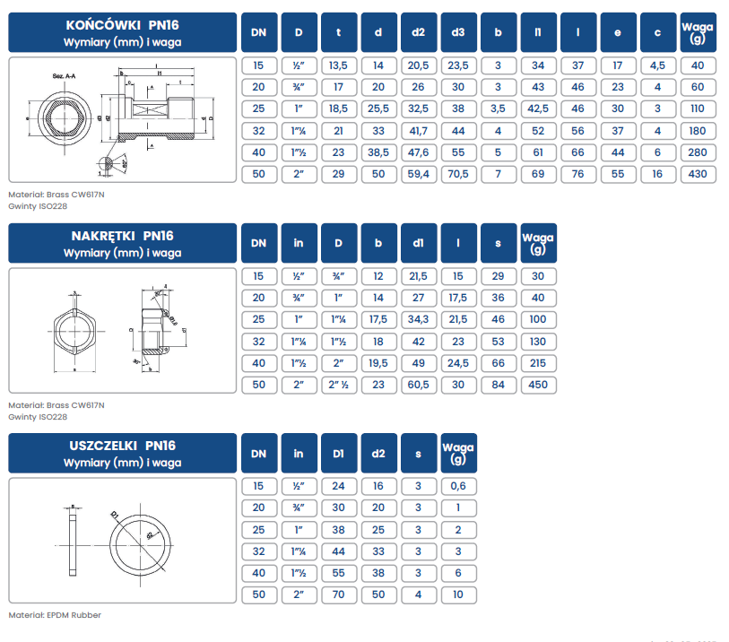 Kompletny zestaw śrubunków RAC do wodomierzy.